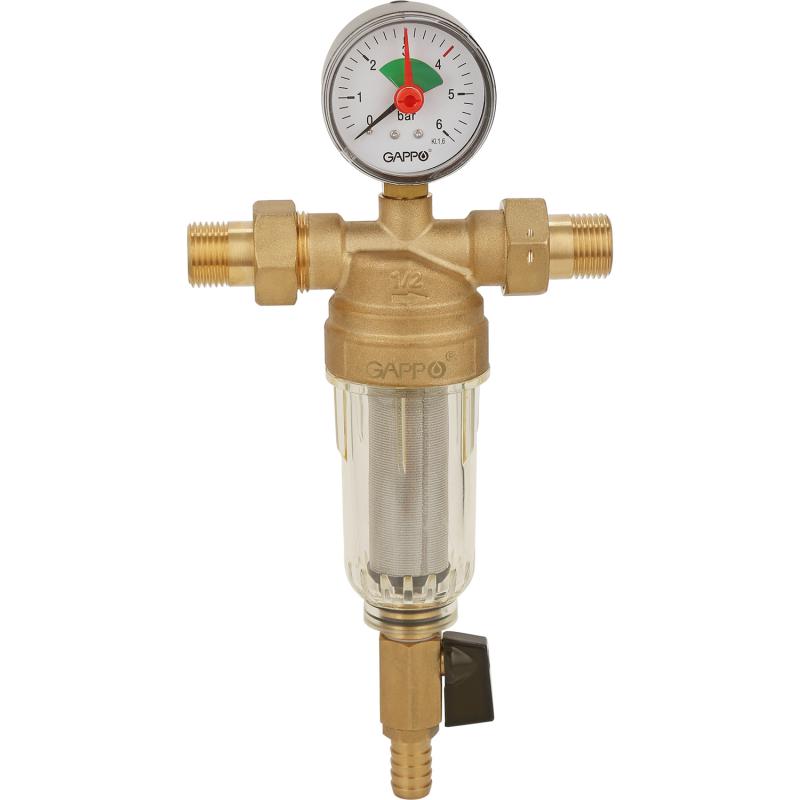 Фильтр промывной хол. воды 1/2" с монометром GAPPO /10/1 шт.уп