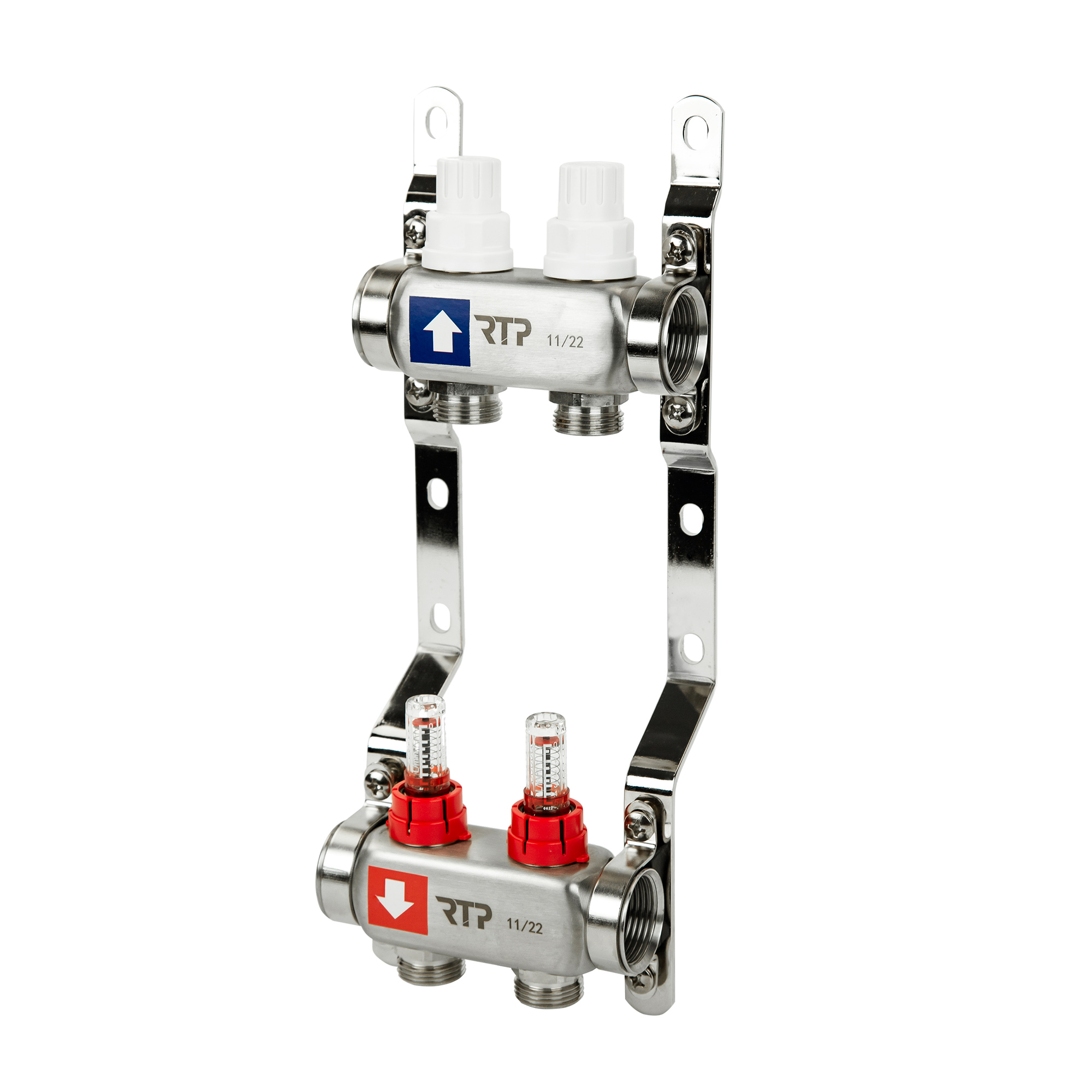 Коллекторная группа с расходомером и кронштейном (евроконус 3/4") нержавеющая сталь SUS 304 1"х 2 вы
