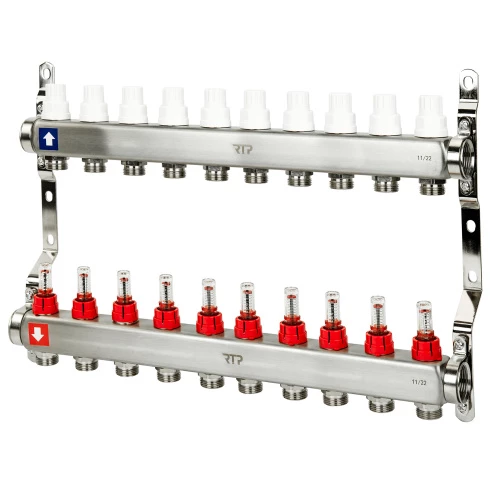 Коллекторная группа с расходомером и кронштейном (евроконус 3/4") нержавеющая сталь SUS 304 1"х10 вы