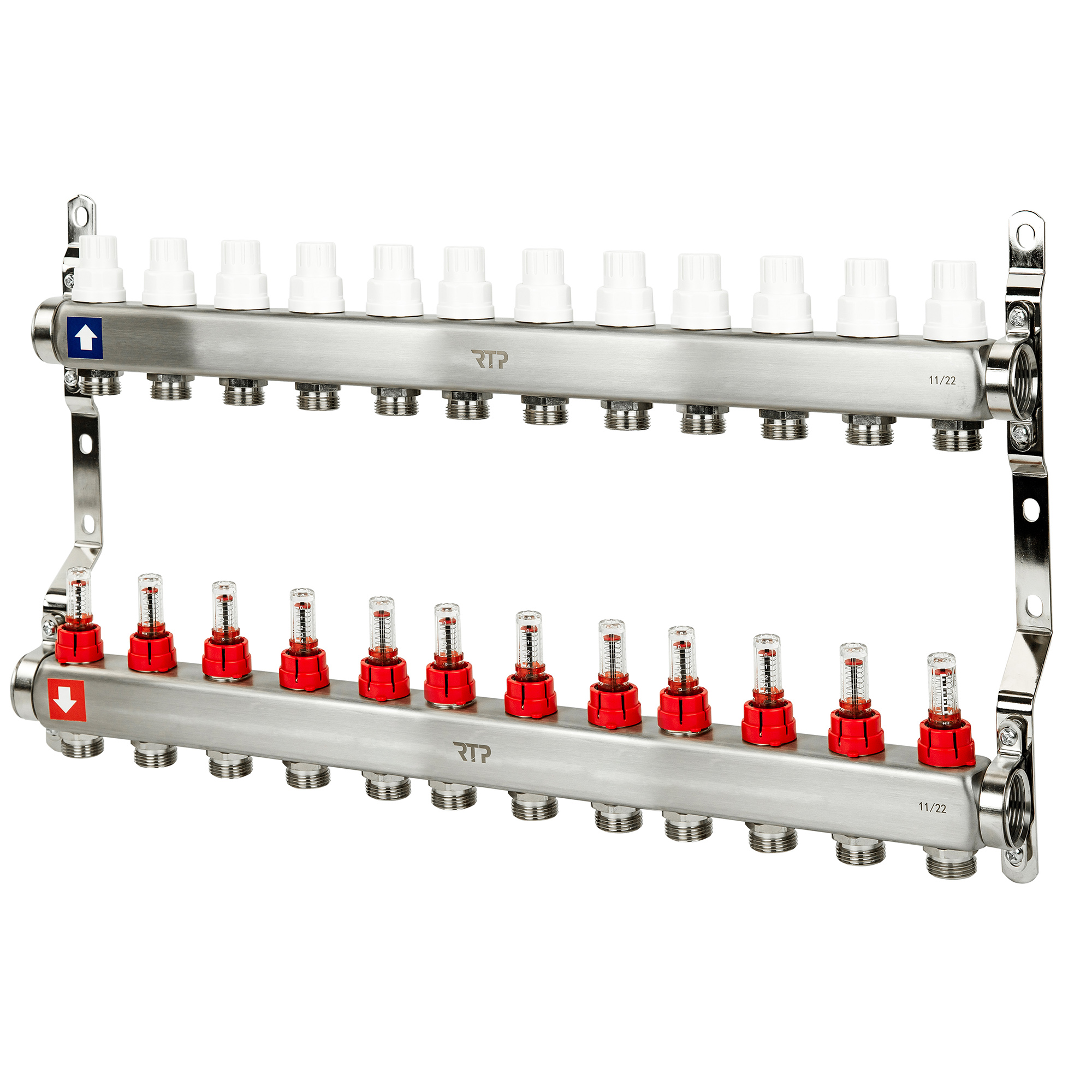 Коллекторная группа с расходомером и кронштейном (евроконус 3/4") нержавеющая сталь SUS 304 1"х12 вы