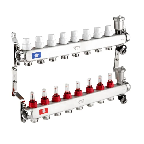 Коллекторная группа с регулирующими клапанами, расходомерами, воздухоотводчиками, обратными и дренаж