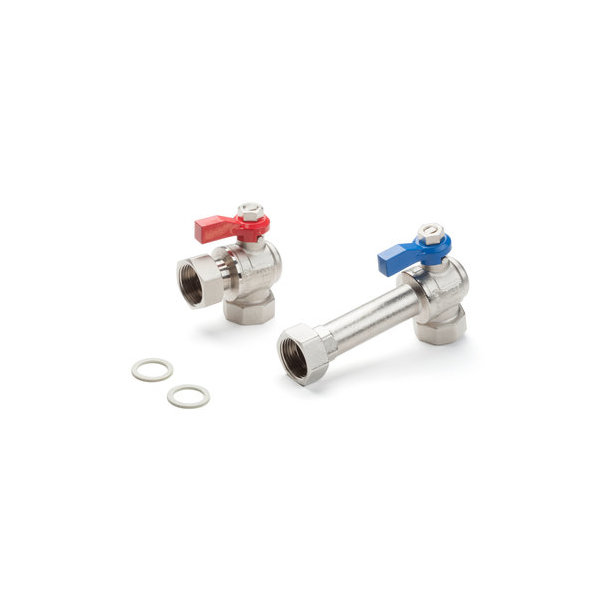 Состоит из двух угловых шаровых кранов: с красной и синей рукоятками.