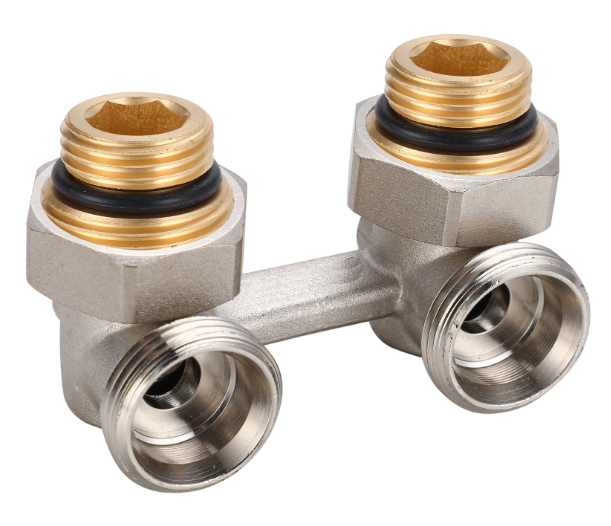 Н-вентиль 3/4" угловой с переходниками 3/4"х1/2" для стального панельного радиатора, 10/ 80 шт