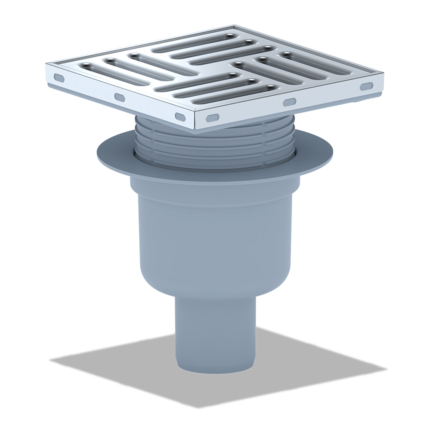 Трап вертикальный регулируемый с сухим затвором решетка из нержавеющей стали ВК ПП 150/150х50, серый